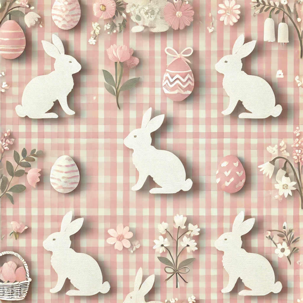 Classic gingham plaid gets a playful twist with hopping bunny silhouettes. Cozy and nostalgic.