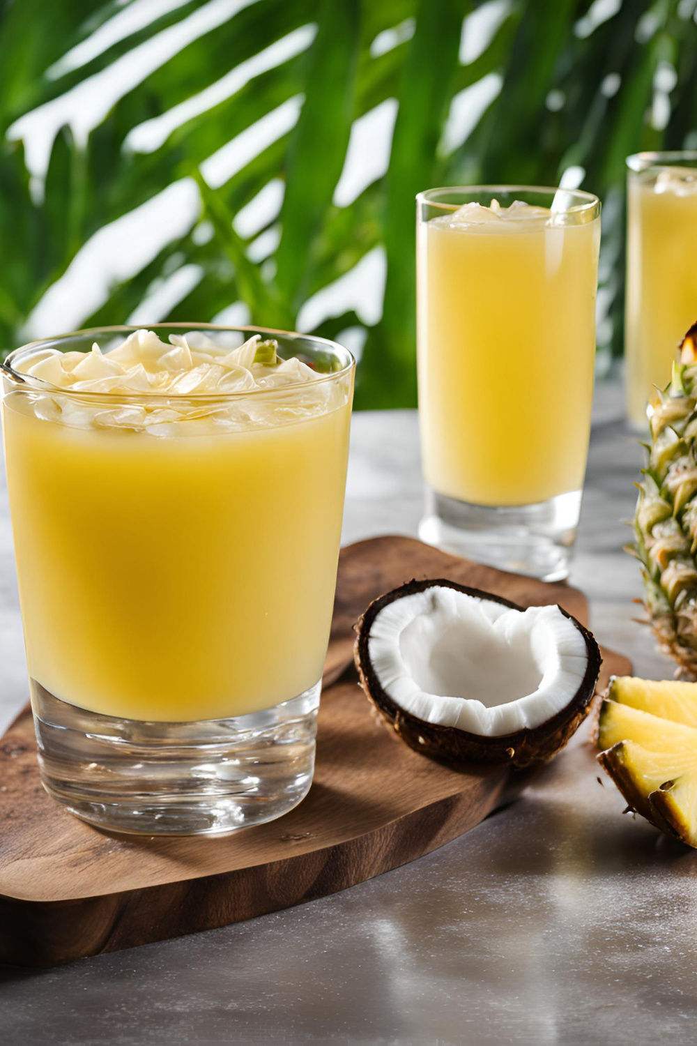• Recipe: Mix pineapple juice and coconut water over ice, then garnish with lime slices.