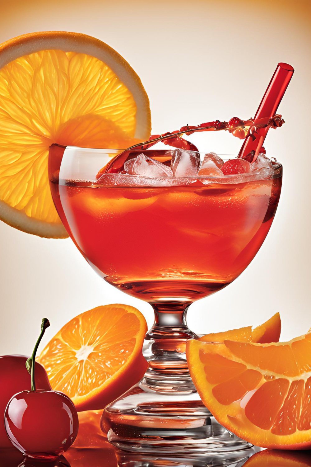 • Ingredients: Tequila, orange juice, grenadine, orange slice, maraschino cherry