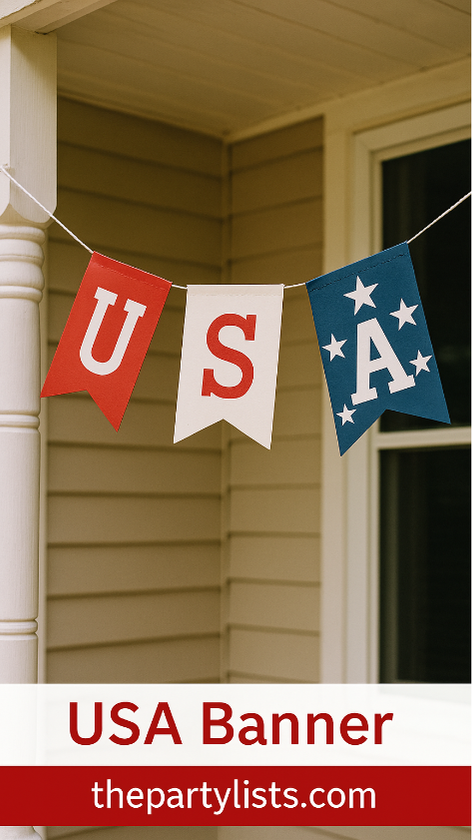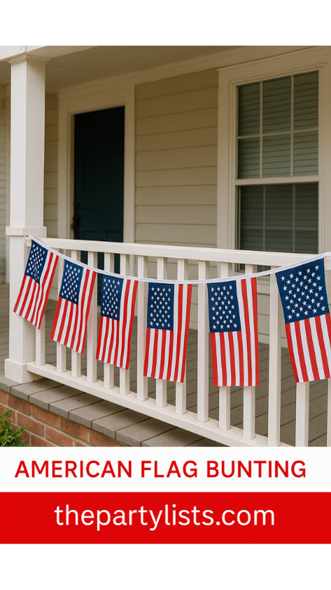 - Decor Idea: Classic flag bunting strung along fences, railings, or the front porch—it’s a backyard party must.